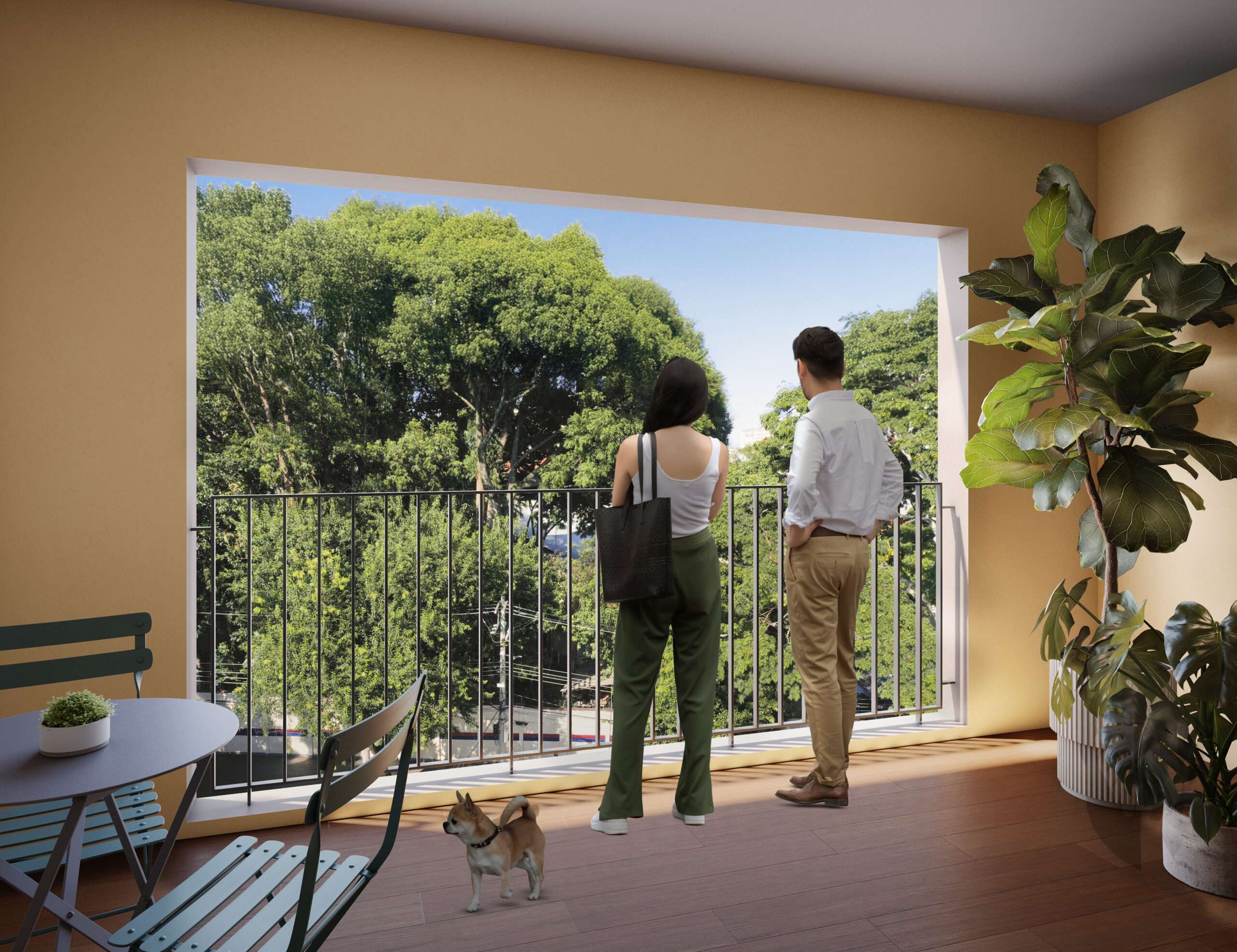 A infraestrutura é completa: são 14 pavimentos com um térreo repleto de áreas comuns projetadas por Felipe SS Rodrigues, incluindo coworking, lavanderia coletiva, bicicletário, salão de festas e jogos, fitness externo, churrasqueira, pet place, playground, redário, horta coletiva, além de uma vaga dedicada para carga e descarga.